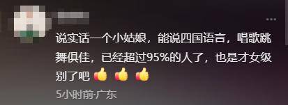不过也有的网友说道:“一个小姑娘,能说四国语言,唱歌跳舞俱佳,已经超过95%的人了,多少也是才女级别了。”