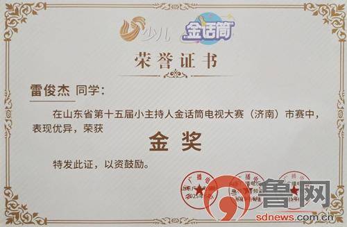 从初登舞台的青涩少年,到如今闪耀金话筒赛场的金奖得主,雷俊杰用热爱与坚持书写着属于自己的成长篇章。让我们共同期待这位滕州至善少年在更广阔的道路上再创佳绩,绽放更加耀眼的光芒!