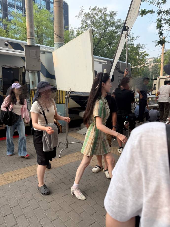 搜狐娱乐讯 近日,林允新剧造型路透图释出。林允头戴发箍身穿浅绿格纹西装裙,演绎90年代复古风情,清新又迷人。