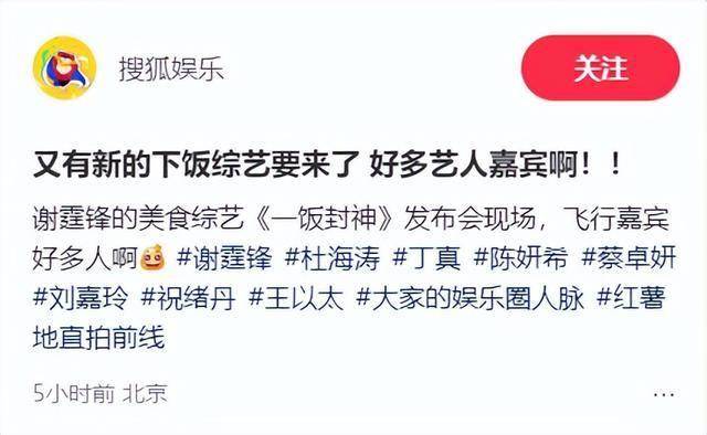 不过仅仅是邀请的嘉宾就是一大看点,谢霆锋、阿Sa、刘嘉玲、杜海涛、陈妍希、丁真等人为常驻嘉宾,黄晓明、田曦薇、邓为、时代少年团等作为明星吃货陪审团。
