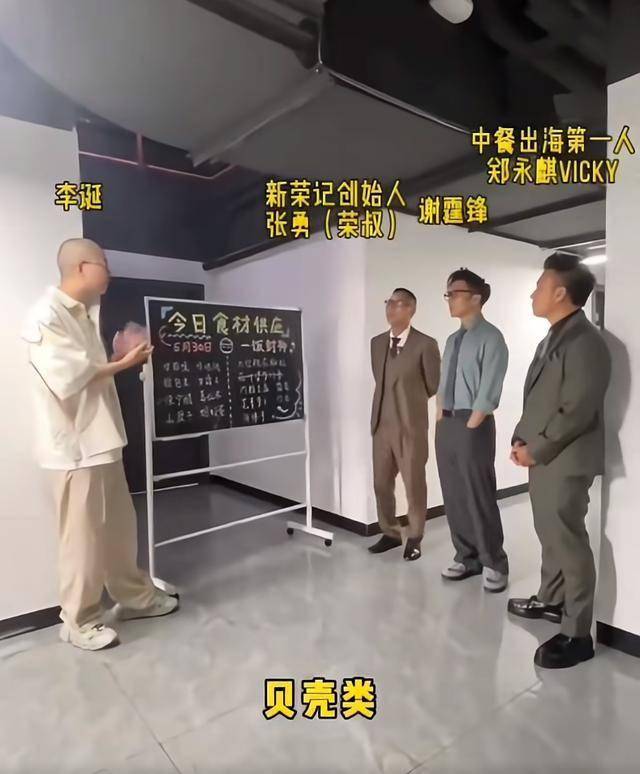 仔细看,坐在谢霆锋身边的也都是大佬,戴眼镜的这位是中餐饮食行业的大佬,现在是新荣记品牌的创始人。