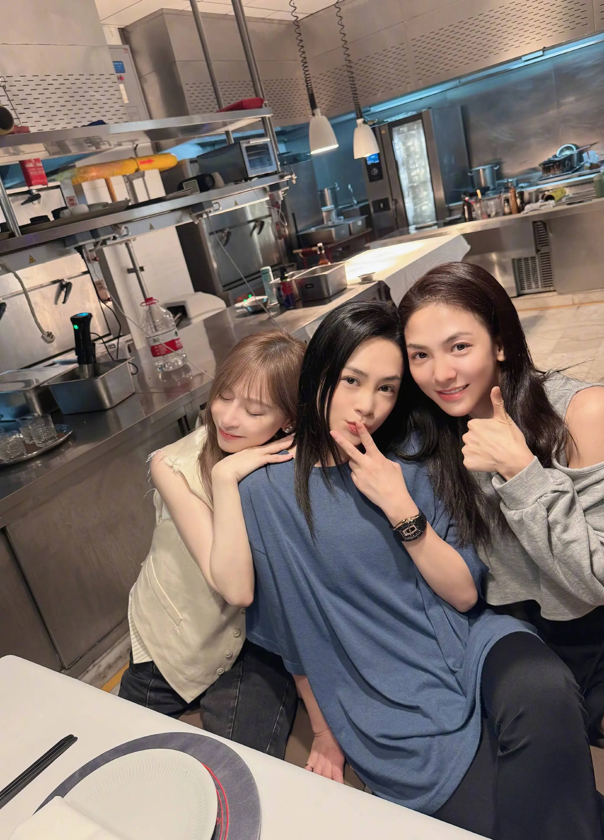 钟欣潼与王心凌、唐诗逸三人一起在后厨吃饭。