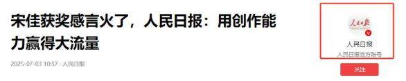 时隔6天,人民日报发文“锐评”宋佳获奖,引起了不少网友粉丝的热议。
