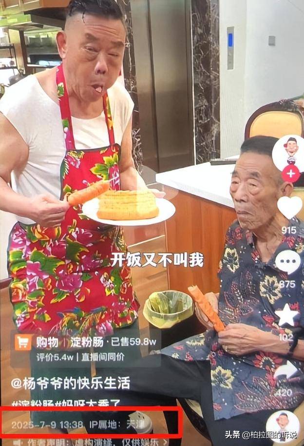 上午剪彩结束,到中午回家了也不消停,昨天中午杨家的老三杨伦,还在拉着老爷子在视频里卖淀粉肠。