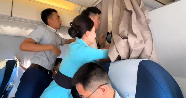 乘务员们赶紧出来阻止这场闹剧,可根本就不是他们的对手,