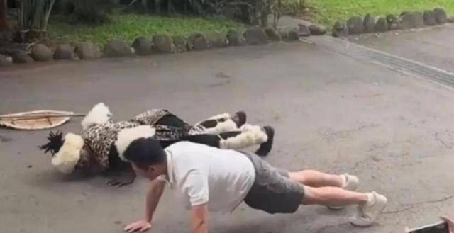 当时不知道是不是因为节目需要,一个工作人员突然仰面朝天倒在了地上。