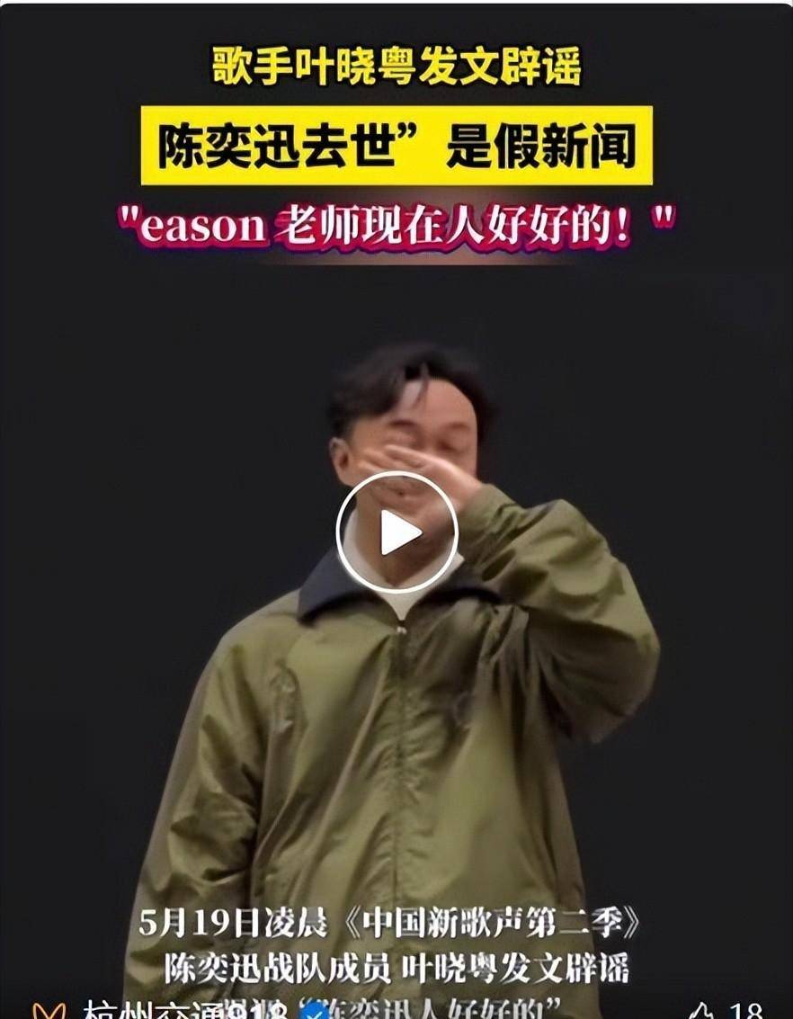 这些明星真是太冤了。陈奕迅不就是得个新冠嘛,住院治疗推迟演唱会,结果3天后网上就传他"没了"。那个造谣视频做得还挺像回事,什么"高雄医院"、"抢救无效",编得有鼻子有眼的。