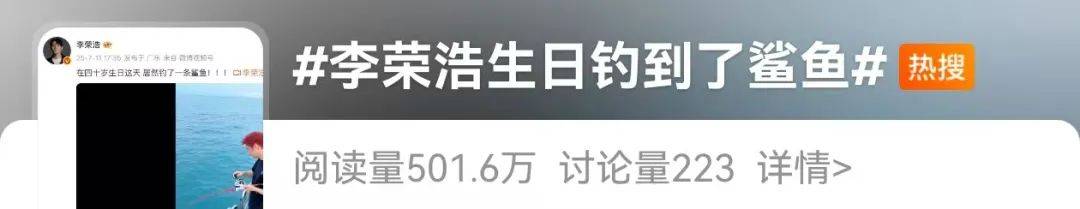 当晚,“李荣浩生日钓到了鲨鱼”的消息,冲上热搜。