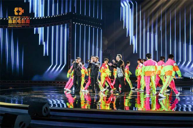 光影欢腾映辽沈,当晚的文艺表演同样创意十足,异彩纷呈。五位主持人合体带来开场歌舞《喜聚辽宁,快乐满屏》,用幽默语言配上魔性旋律喜迎八方宾客。情景歌舞《喜游记》将传统相声的捧逗艺术与歌舞表演结合,《我变了我没变》用AIGC技术创意回望中国喜剧120年发展历程。唱跳表演《快乐制造者》尽显东北人喜剧基因,则用改编版《我要开花》唱出摇滚人对喜剧电影的深情厚爱。