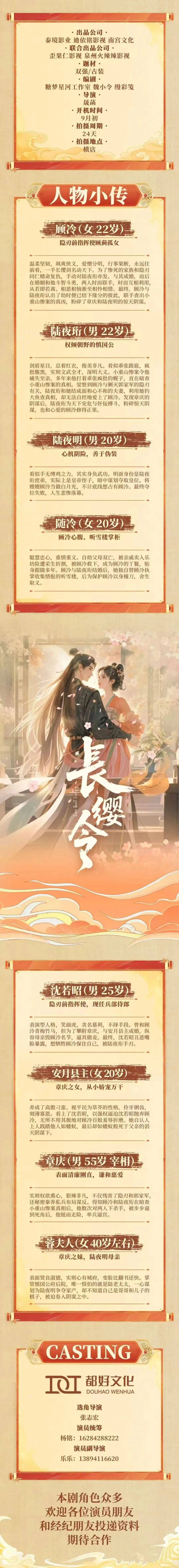 线上筹备,剧中还有众多角色未定,诚挚欢迎各大经纪公司/演员朋友投递资料。