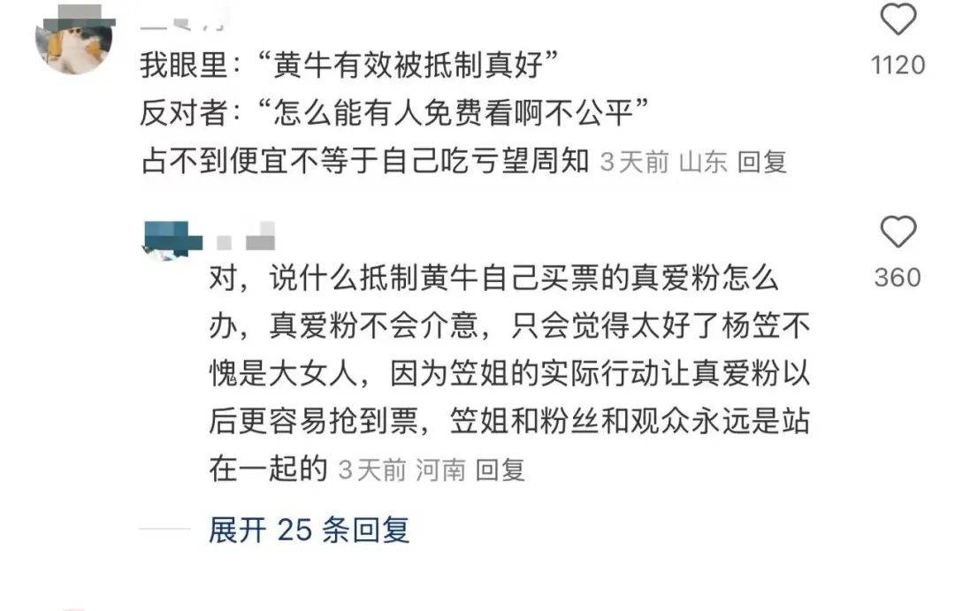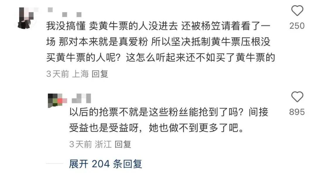有人留言,这相当于那些买黄牛票的人没进去,但被杨笠免费请看了一场。那些官方渠道购票的粉丝,听上去吃亏了。