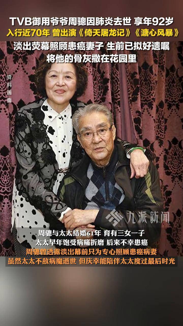 如今夫妻两人在另一个世界团聚了,2025年7月4日,港媒突然报道,周骢因肺炎于7月4日去世了,享年92岁,愿老人家一路走好。
