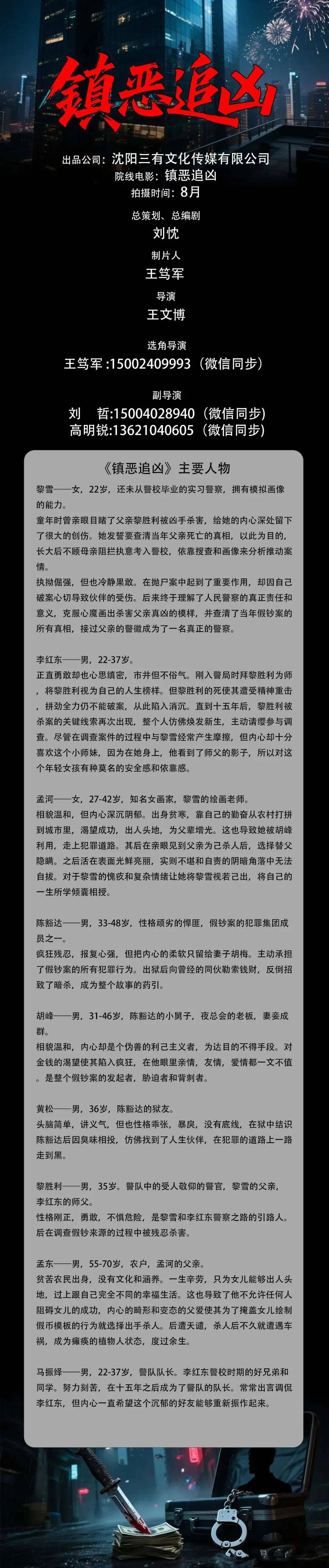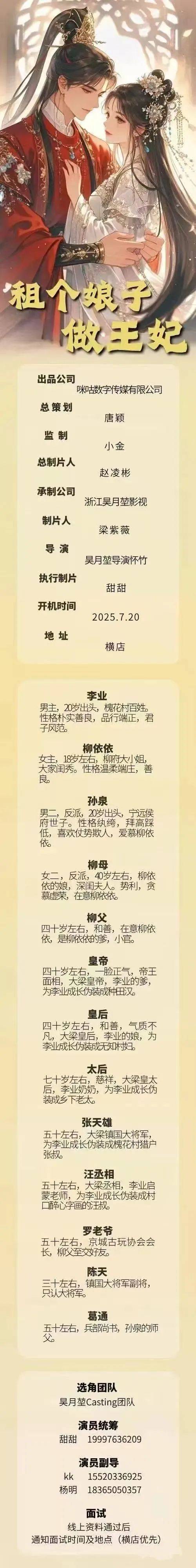 剧中大量角色未定,欢迎各大经济公司艺人,个人艺人朋友们投递资料。
