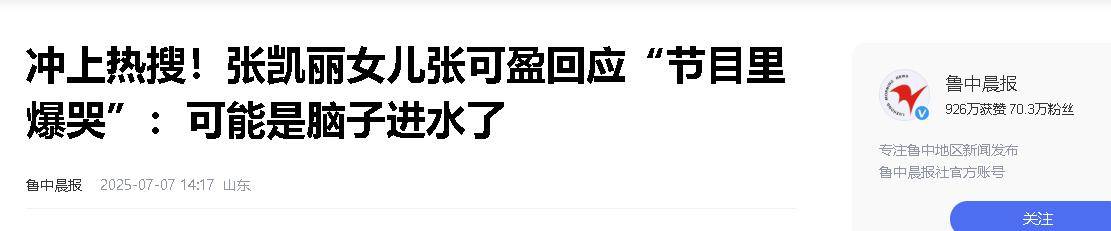 鲁中晨报——冲上热搜!张凯丽女儿张可盈回应“节目里爆哭”:可能是脑子进水了2025-07-07