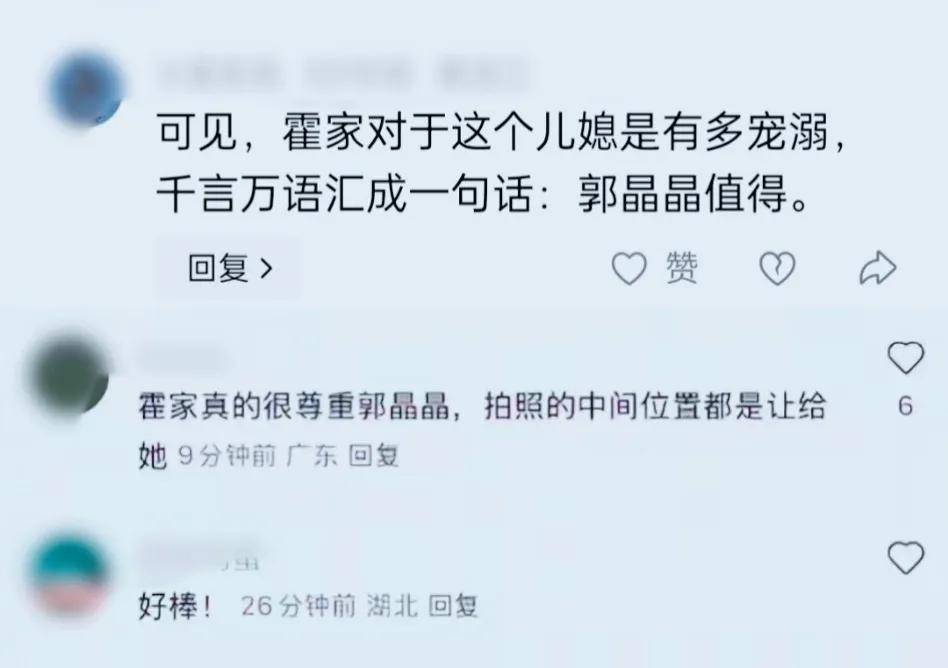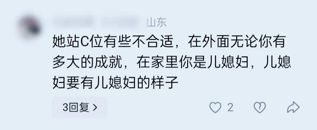 网友觉得郭晶晶站c位有些不合适,儿媳妇就要有儿媳妇的样子。