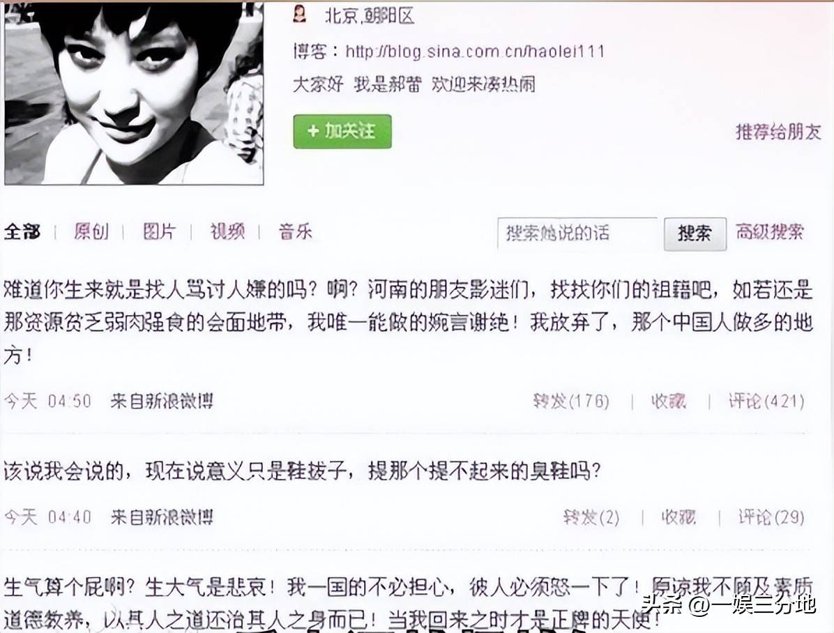 或许也正是因为这样,气急败坏的郝蕾在网上大骂李光洁,甚至整个河南人民也未能幸免。