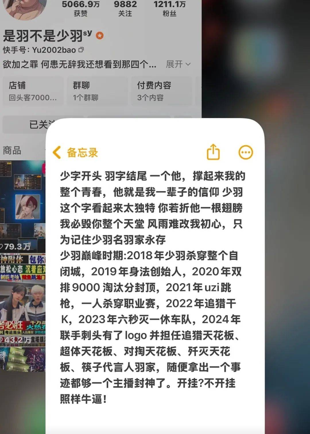 他们刷屏“为什么喜欢少羽?”,但没一个人认真回答这个问题,只是复制粘贴着其在游戏里的丰功伟绩,是“技巧”“一人杀穿”,是那些远离现实规则的胜利故事。