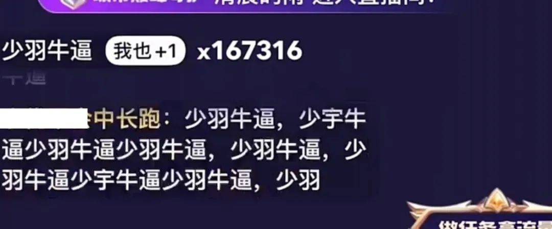 自封号的讯息传来,“羽家军”火速涌入短视频平台的各个直播间,只要发一句“少羽牛逼”,就有同盟跟着接龙到天荒地老。