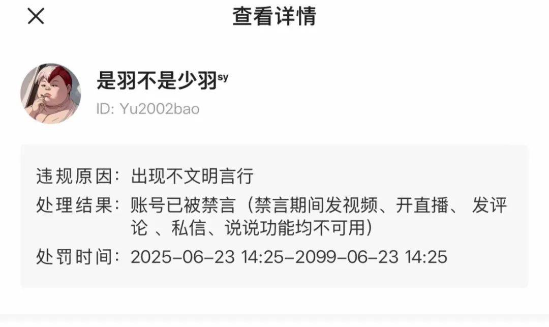在短视频平台上,属于青少年群体的流量之王倒下了。少羽的账号,近来传出“被封禁到2099年”的消息。