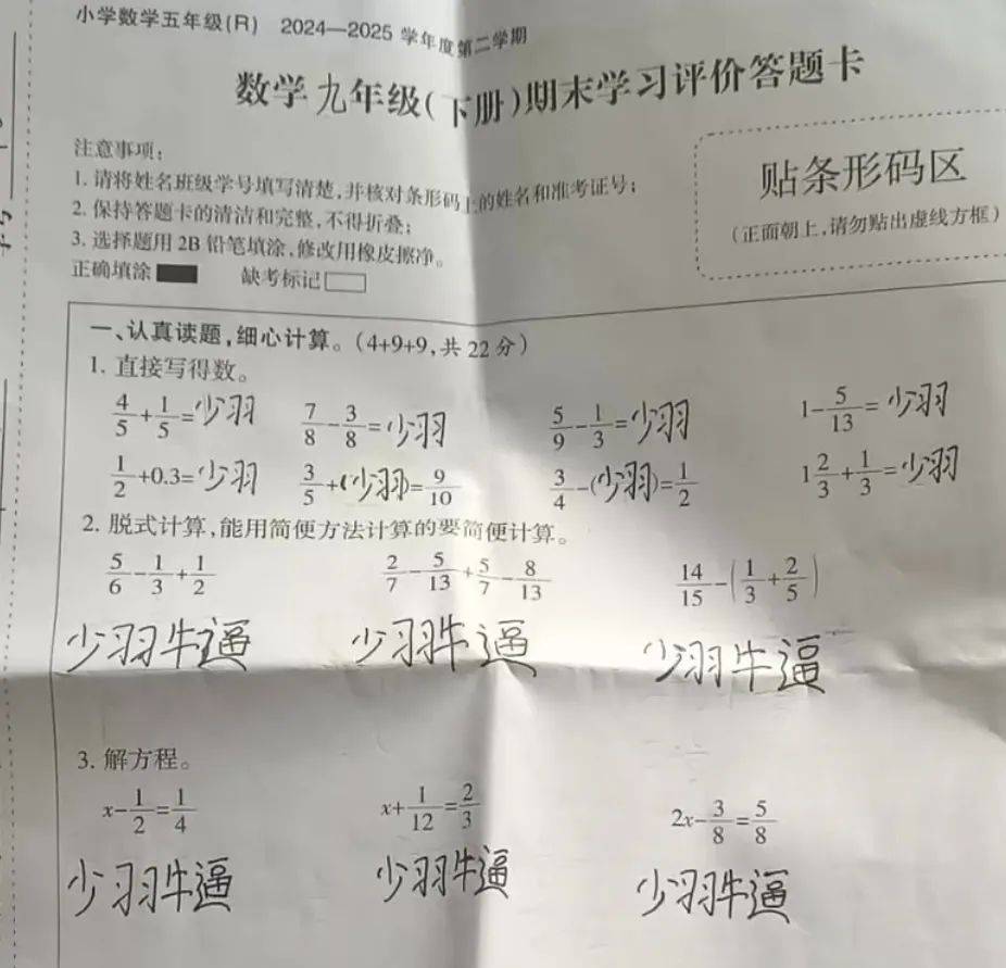 因为前一阵恰好有这么件事:在各大考试期间,一部分少羽粉丝出现了在答题卡上写“少羽牛逼”的举动。
