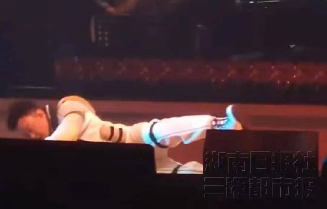 7月13日晚,陈奕迅北京演唱会。陈奕迅表演时太投入,在倒退时踩空台阶,重重摔倒。