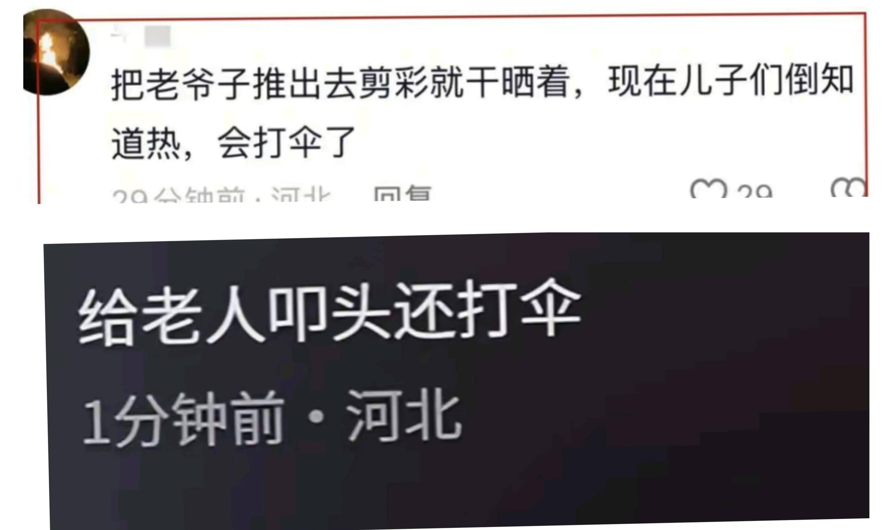网友指责他:现在知道打伞,老爸剪彩的时候怎么不给打伞?