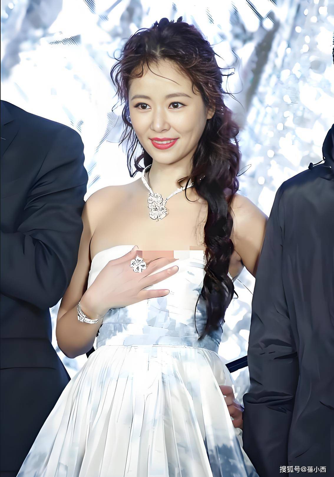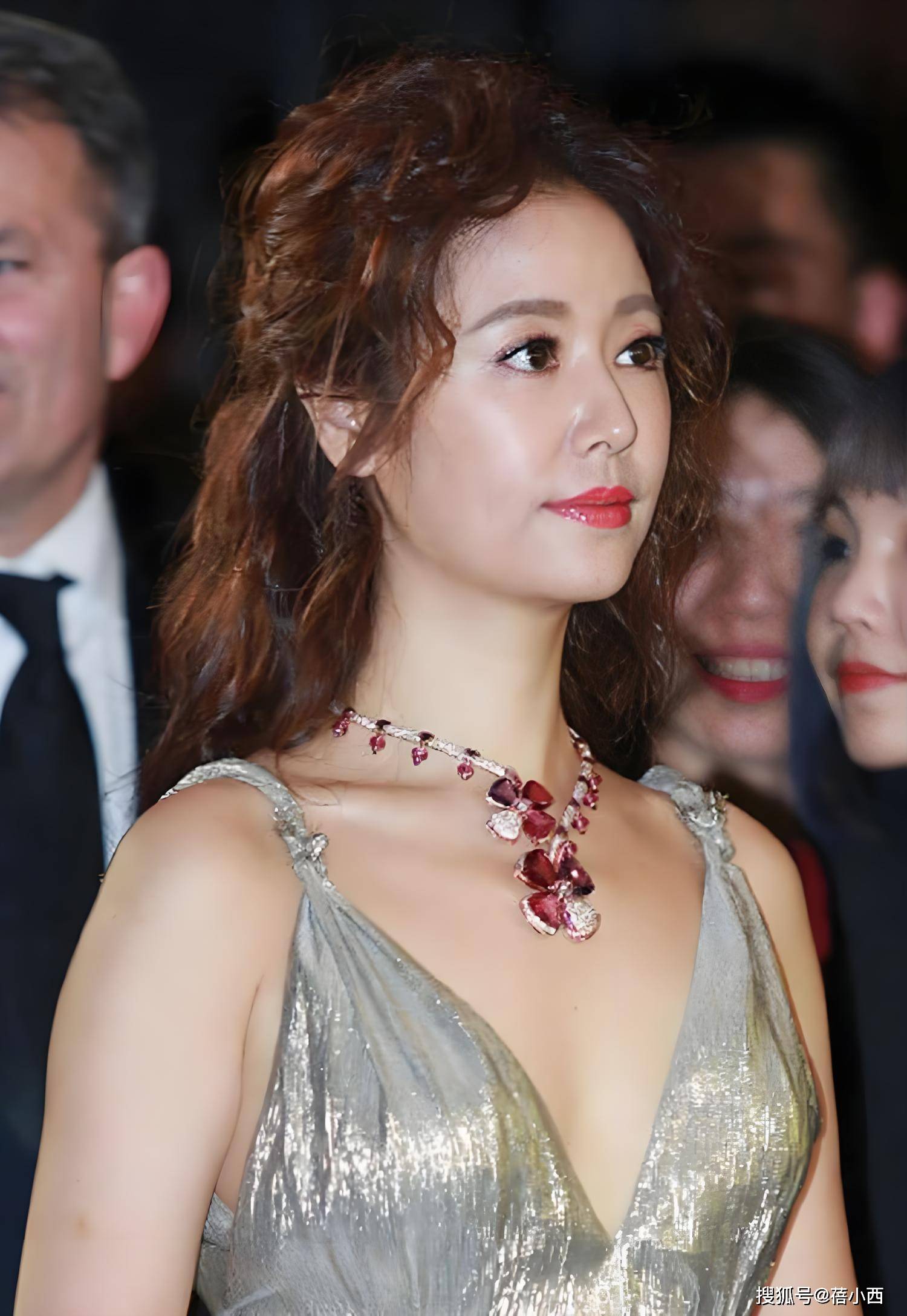 林心如的脖子上就搭配了一条非常华丽的项链,项链的色系和裙子比较接近,和手上的戒指也是配套的,所以一套造型看起来非常协调,华丽中又不失去女人味,只感觉岁月并没有在林心如的脸上留下痕迹,反而为她增添了许多的风情。