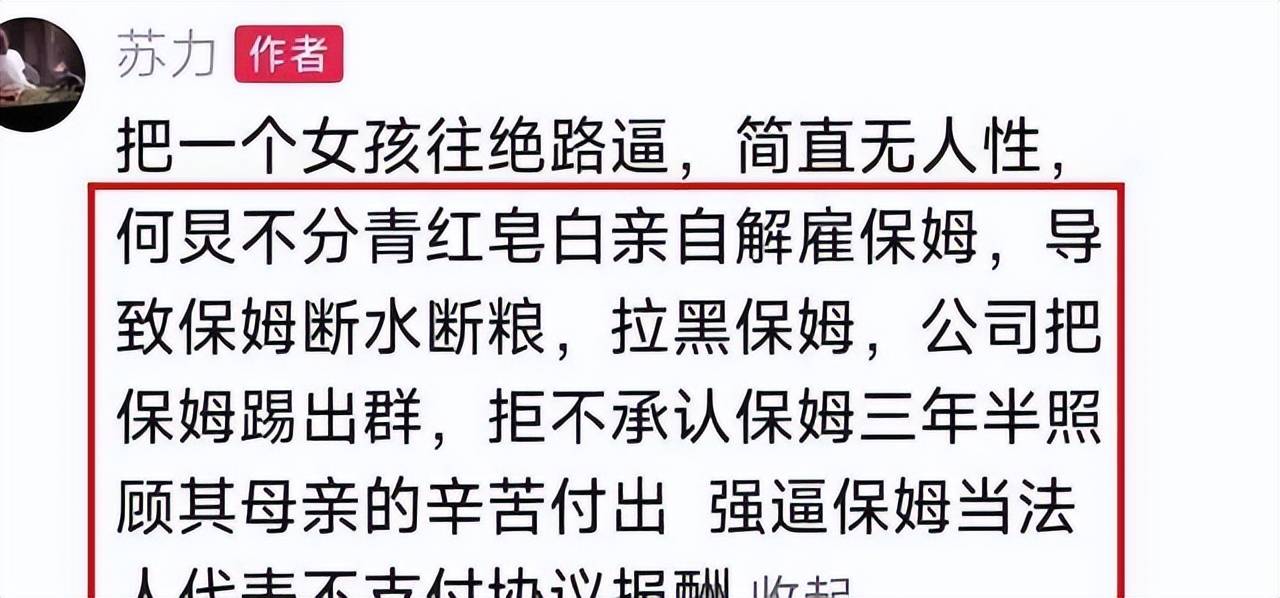 礼物风波没过多久,在2023年何炅又深陷拖欠保姆风波中。