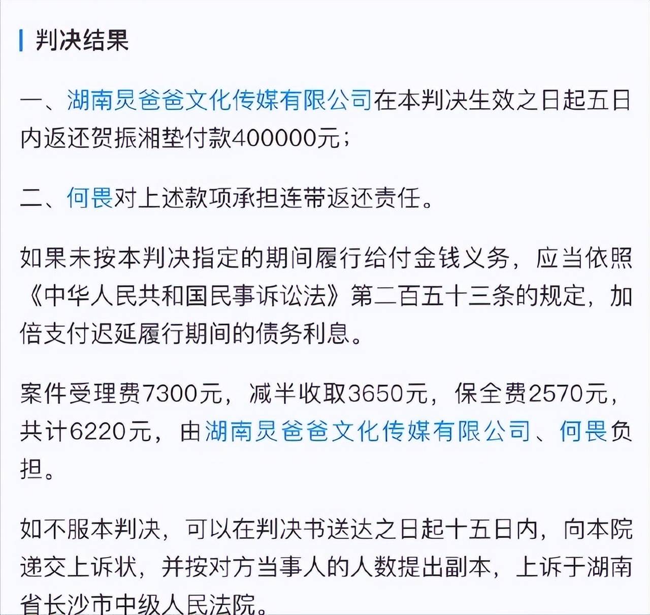 网友晒出的判决书中,何炅一审败诉,被判赔付14万元左右,何炅不服,并继续上诉,表示这是一个农夫与蛇的故事。
