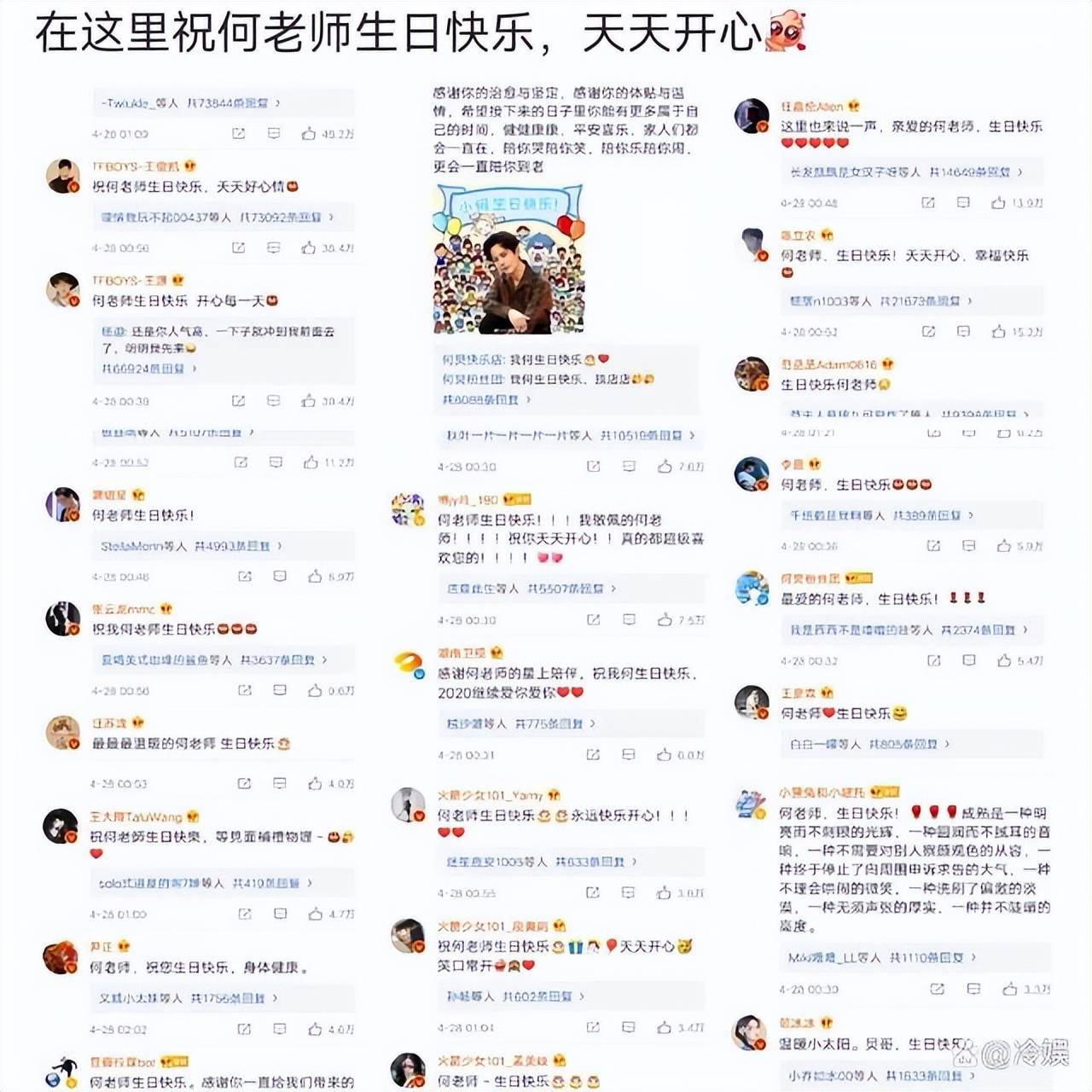 何炅在圈内的好人缘也是这么起来的,往年的时候何老师过生日的时候,更是有大半个娱乐圈的明星给何老师送祝福,甚至因为人数太多而上了热搜。