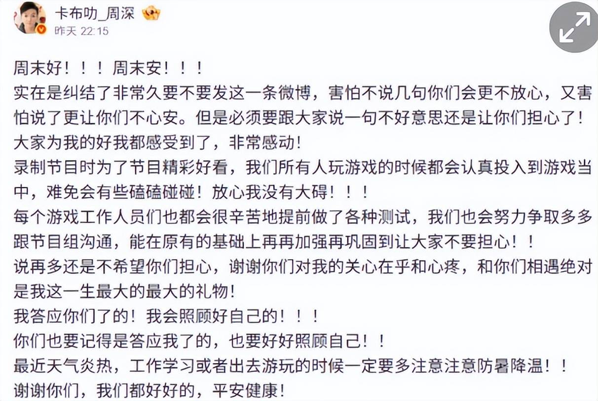周深是受伤的那一个,他也是纠结了很久,这才发文报了平安。