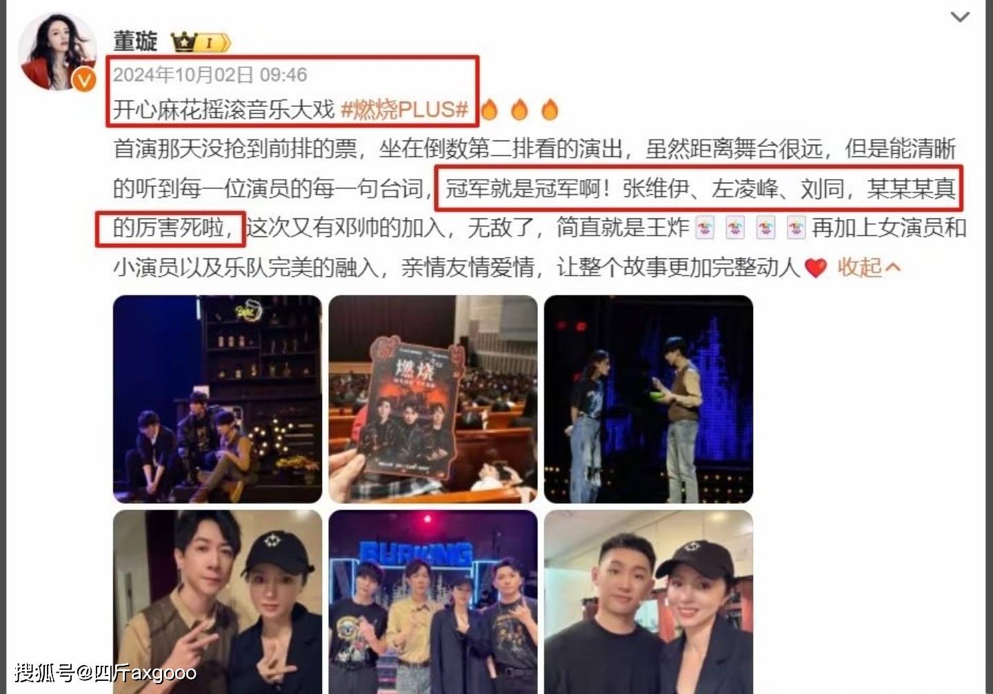 并且董璇还在 2024 年 10 月的时候公开称赞过张维伊在开心麻花音乐剧中的表现,说他 “就是冠军”,不过那时候大家都没有往深处想。