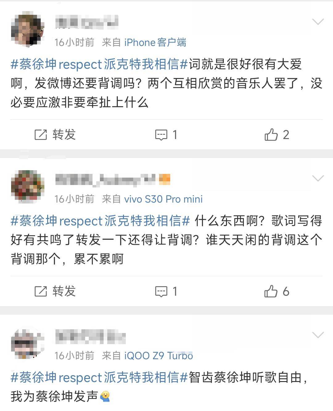 当然,也有不少网友支持蔡徐坤,毕竟听歌自由,蔡徐坤转个舞台也不需要对任何人进行背调。