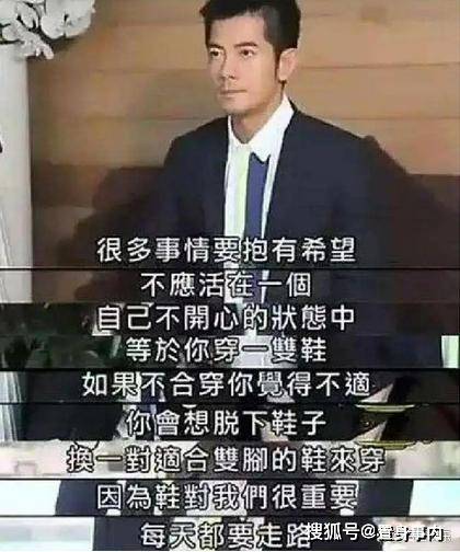 对于这段感情,郭富城随意一句话点出他的态度:“鞋子不合脚走着不舒服,继续穿只会流血,换双可能会好点。”