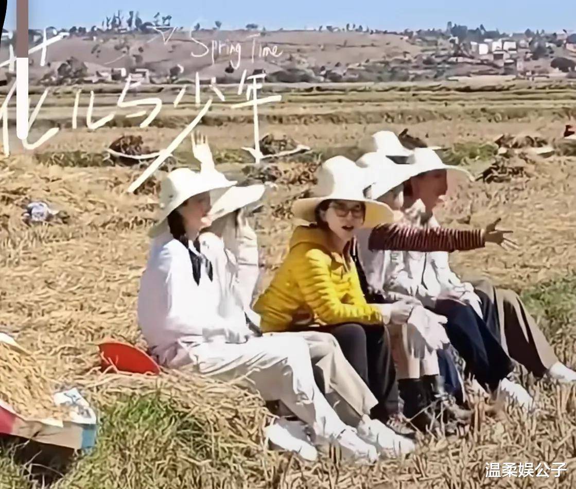 与她并肩而立的是二姐陈数。一直以来,陈数就以极佳的身材和状态示人,这次她一身简单的套装外加衬衫,加上高度数的眼镜,坐在人群中显得身份特立独行。在田间,她毫不犹豫地拿起镰刀,戴着草帽,拼命地干活,展现了她的工作热情。
