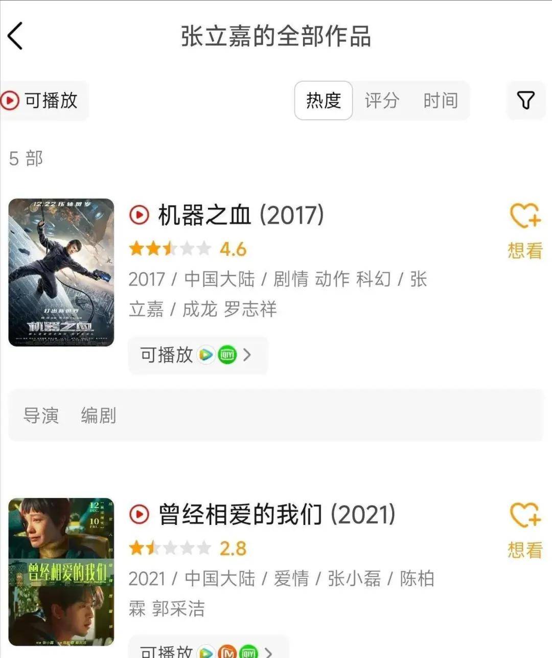 张立嘉他曾拍摄过《机器之血》《曾经相爱的我们》汇集了成龙、罗志祥、欧阳娜娜娜、陈柏霖、郭采洁等明星大腕,一个豆瓣4.7,另一个豆瓣2.8,都是口碑惨败的大烂片,因此《猎狐》很不被看好!