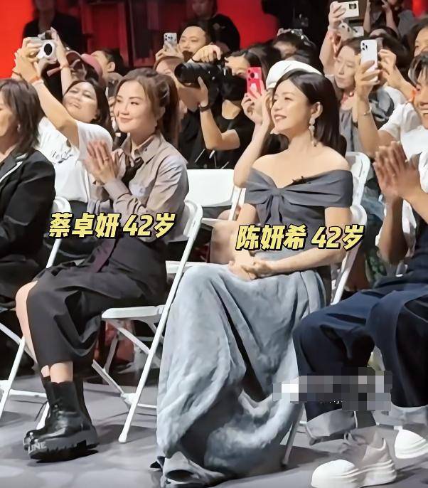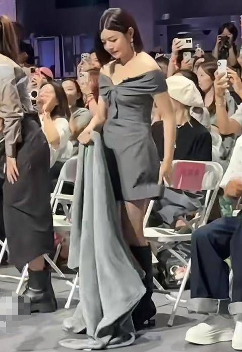 陈妍希当天的穿搭也很简单——一条灰色一字肩短裙配上长筒靴,完全没有明星的奢华感,而且她的位置也被安排在角落,镜头几乎没有给她,场面显得有些落寞。
