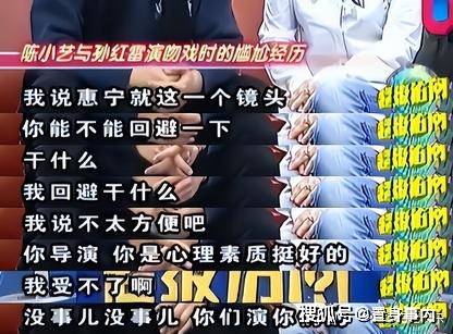 戏里头,陈小艺和孙红雷演的是一对夫妻。拍吻戏的时候,孙红雷不管怎么调整,就是找不到感觉。