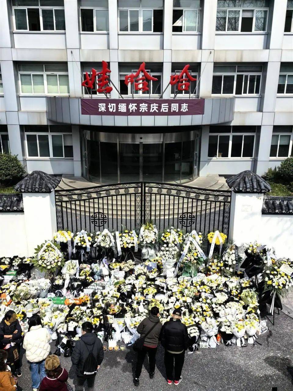他去世当天,杭州阴雨连绵,天南海北的人撑着雨伞来到娃哈哈旧总部悼念宗庆后,其中有娃哈哈的退休职工,也有普通市民。