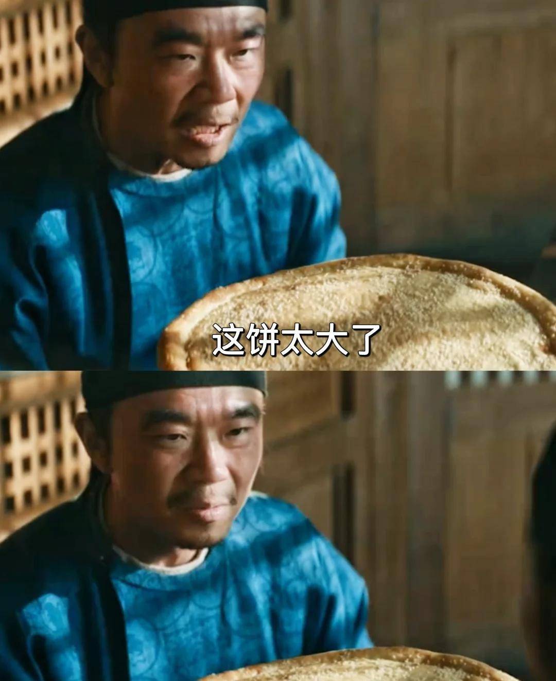 这饼确实挺大,我都塞不下去,表面上是在说饼,其实是在自言自语。