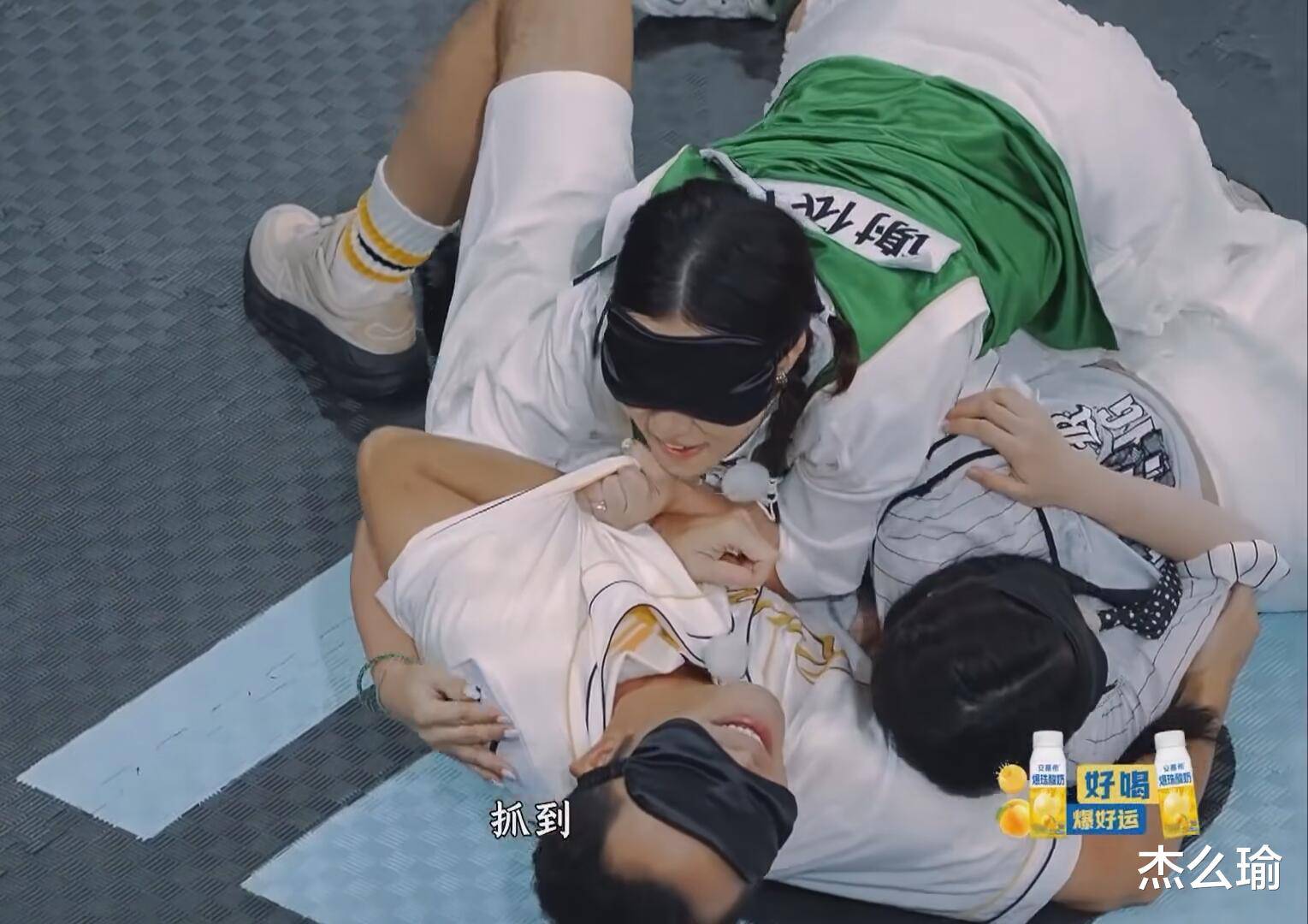 蒙眼后的沙溢显得极为被动,面对对手是女性,他不敢放手一搏。显而易见,他在撕名牌时犹豫不决,害怕触碰到不应碰触的地方。可以说,这场游戏是沙溢故意“放水”,他在这种环境中感到无比尴尬。