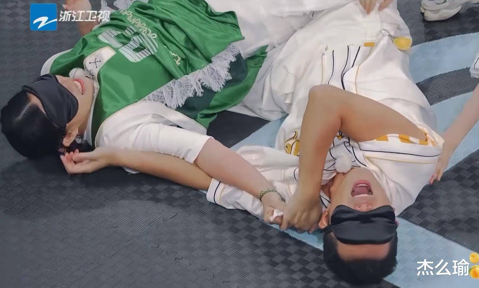 而范丞丞同样面临着类似的困境。当他登场时,立刻决定与张真源联手对付谢依霖。他明白,这不仅仅是赢的问题,甚至可能因为一时失误而遭受批评。尽管他们小心翼翼,但在谢依霖躺倒的瞬间,范丞丞还是不小心碰触到了对方的腿。他连忙抽回手,面露恐惧的神情。毕竟这三位女嘉宾都是穿着短裙,场景实在让人心惊。