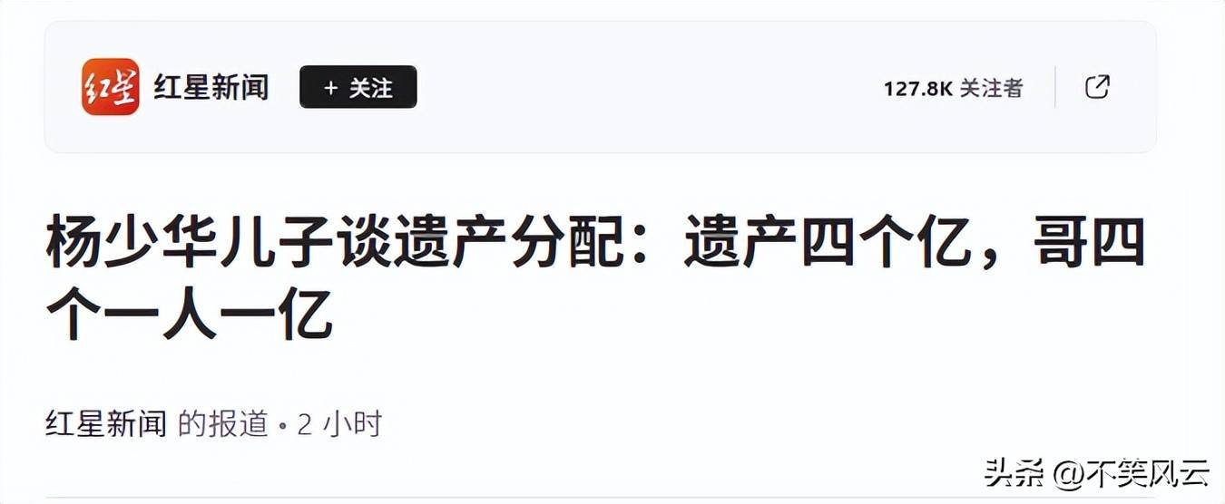 [2]官方媒体:2025-07-18 红星新闻《杨少华儿子谈遗产分配:遗产四个亿,哥四个一人一亿》