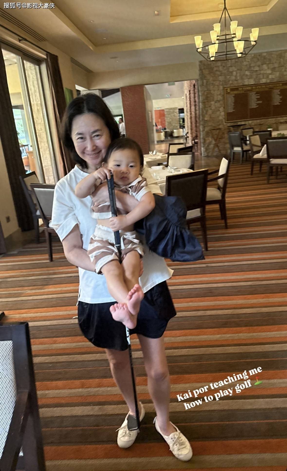 在外面何超琼时时刻刻抱着干外孙,就算是回到屋内也要紧搂着干外孙,只见她用非常标准的姿势抱着婴儿,小婴儿手里则是拿着高尔夫球棒在玩,何超琼笑的那才叫一个慈祥。