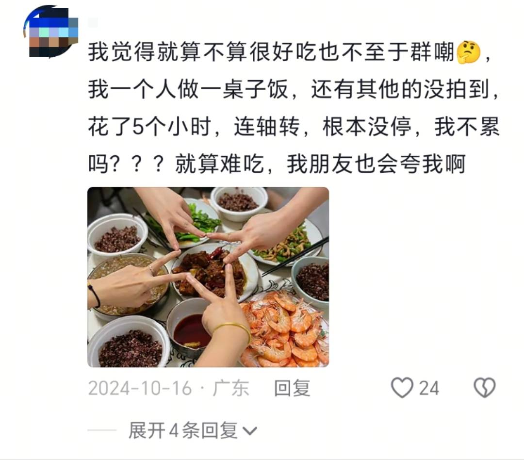 在这片烟火气中,我们看到的是生活中笨拙却又真挚的尝试,朋友之间温暖的包容,还有在繁忙的日常中共同完成一餐的那份连接与温情。究其根本,饭菜好不好吃可能并不是最重要的,真正打动人心的,是那份围桌共餐、亲情友情交织的美好时光。