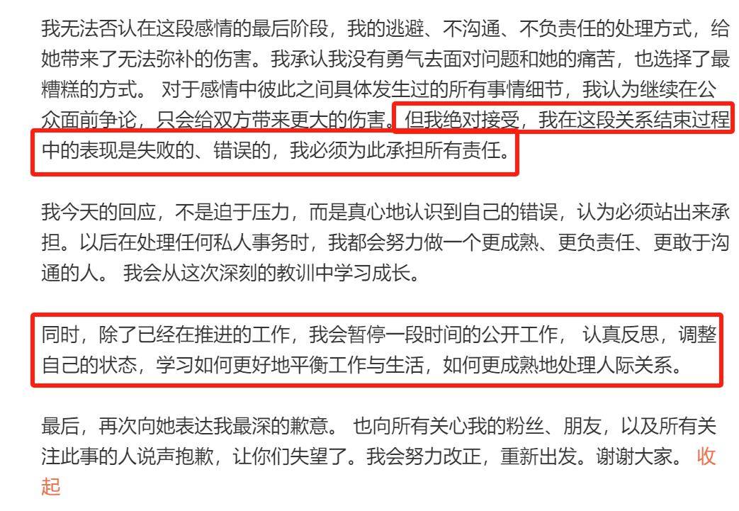 至于团队限制他的事情,梓渝只用了误会解释,表示之后自己会监督团队改进成长,并承诺以后在处理任何私人事务时,都会努力做一个更成熟、更负责任、更敢于沟通的人。还称为了反省,除了已经接了的工作,自己会暂停一段时间,认真反思自己做调整。