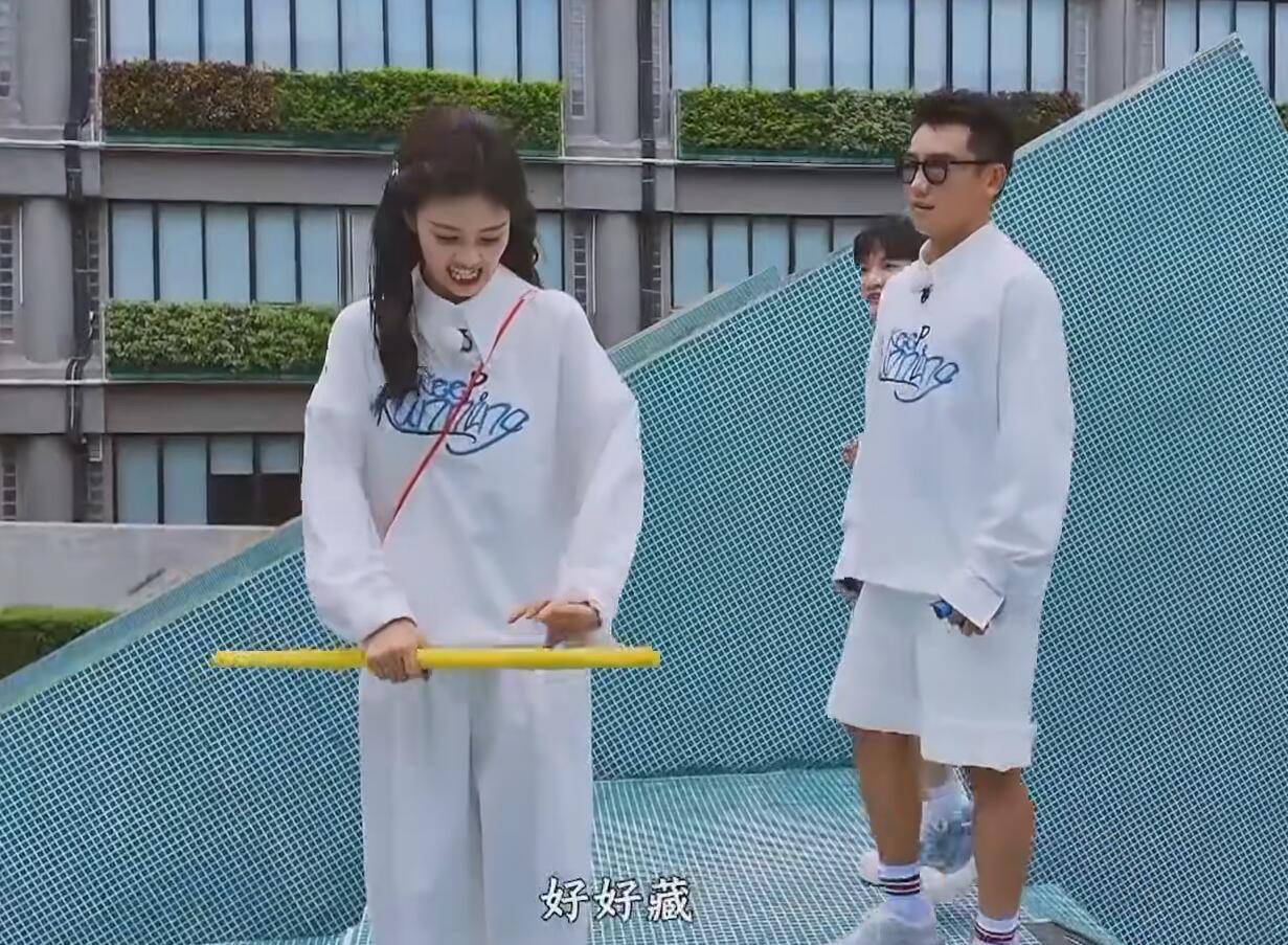 在“藏粉笔”游戏当中,郑恺本来藏得挺好的,绿色的粉笔藏在了绿色的草丛中,相当隐蔽。