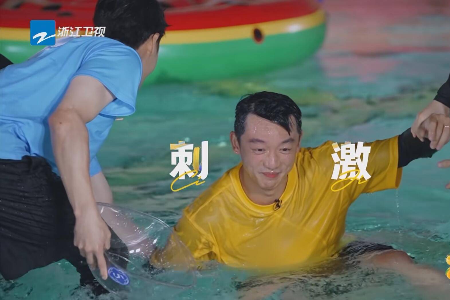话说郑恺的下盘还是相当稳的,没想到直接被“水巴掌”拍倒在泳池里了,这真的太惨了。