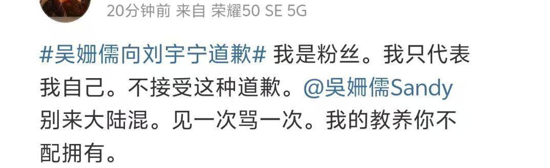 不过,还是有不少粉丝喊话称,不会接受她的道歉,因为她就连道歉都如此没有诚意,避重就轻,不发在内地社媒上,如果吴姗儒之后来内地发展,他们同样也会抵制。