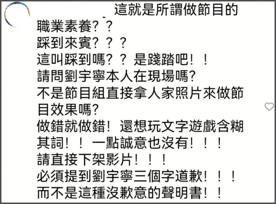 她的这番举动很快在网络上引起轩然大波,刘宇宁本人比较大气,没有追究她的过错。